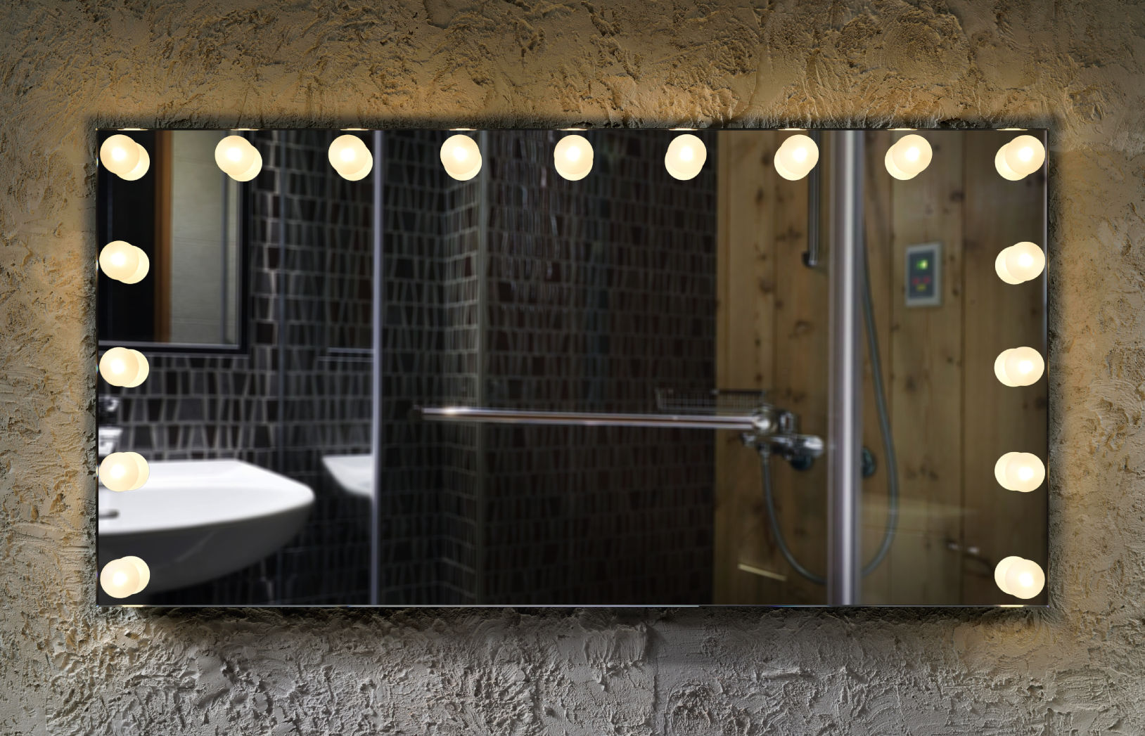 Unsere Badezimmerspiegel mit angebrachten Lampen bieten eine große Auswahl an verschiedensten Beleuchtungsvarianten mit wahlweise kalt- oder warmweißen Licht. Ob in einem Standardmaß oder ihrem persönlichem Wunschmaß, wir fertigen Ihren Spiegel so, wie Sie ihn benötigen. Zudem bieten wir noch eine Vielzahl an Zusatzoptionen an, wie z.B. einer Spiegelheizung oder Glasablage, welche Ihren Spiegel für Sie und Ihr Badezimmer optimal ausstatten und ein hohes Maß an Komfort bieten.