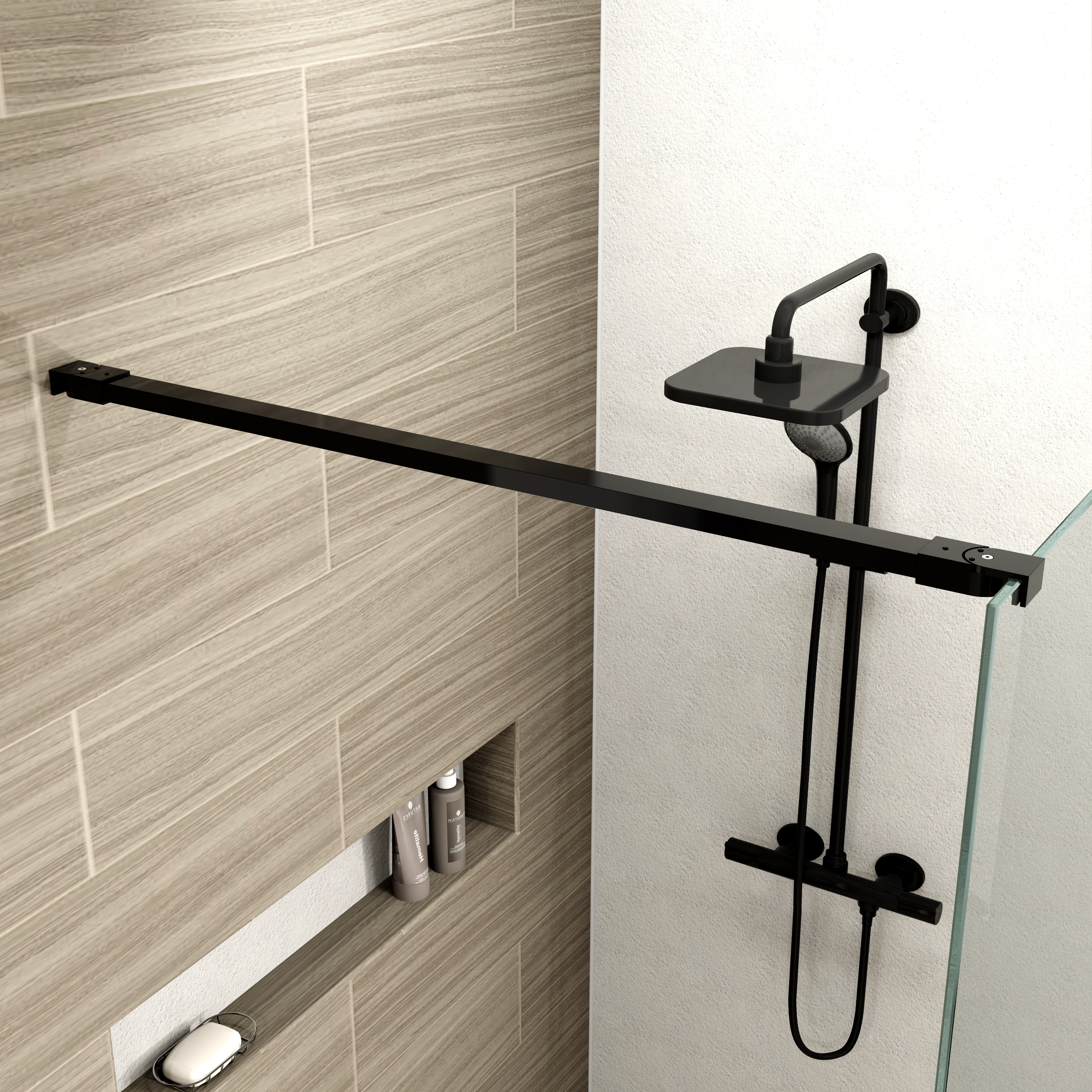 Dank des im Lieferumfang enthaltenen, kürzbaren Stabilisationsarms lässt sich die Tiefe der Dusche individuell auf bis zu 120 cm anpassen. Das durchdachte Profilsystem inklusive passgenauer Dichtungen ermöglicht eine einfache Montage und einen sauberen Wandabschluss. Ob im markanten Industrial-Look in Schwarz oder klassisch in Chrom - diese Duschwand ist ein langlebiges Highlight für jedes moderne Bad. Beachten Sie für ein optimales Ergebnis die 24-stündige Aushärtungszeit der Silikon-Verklebung.