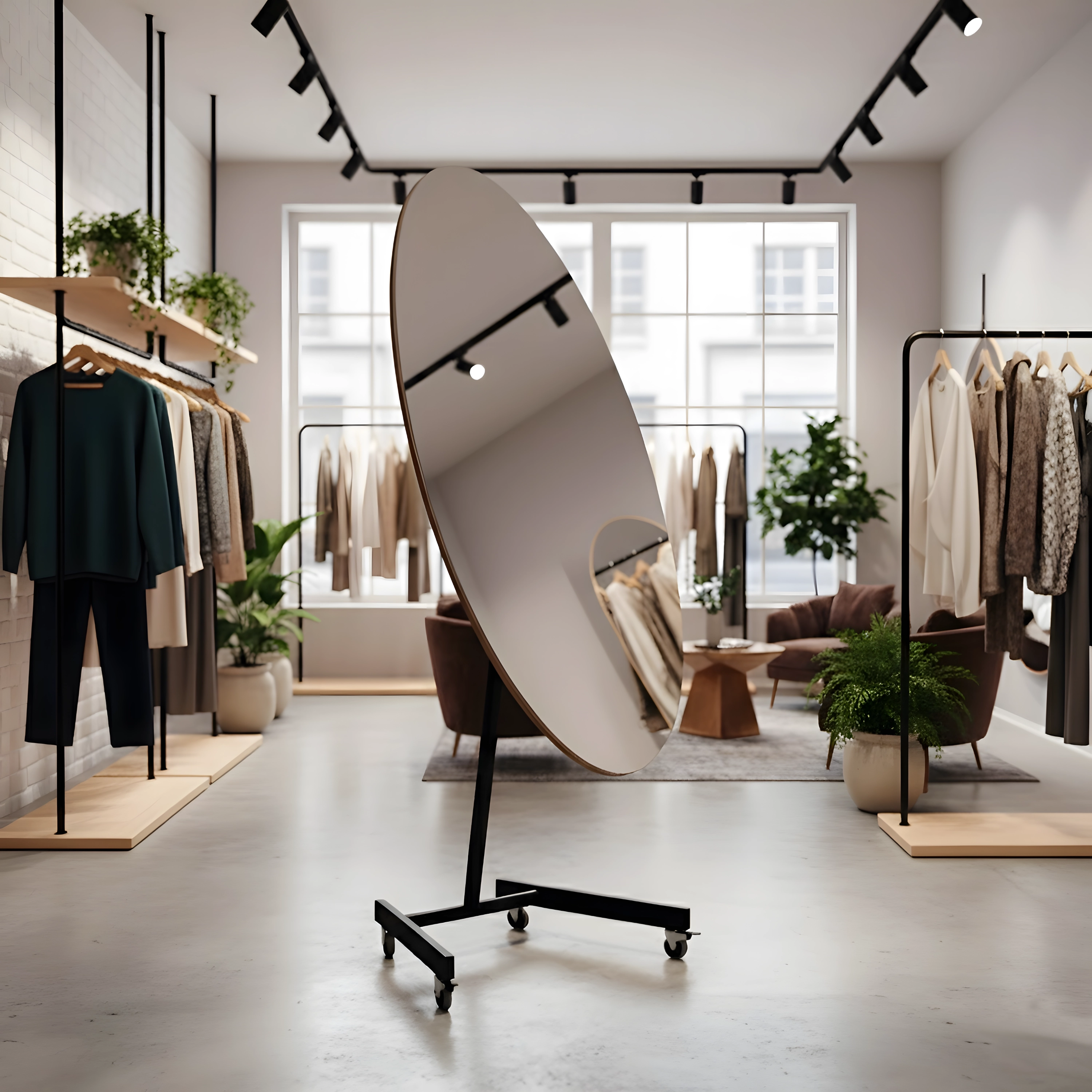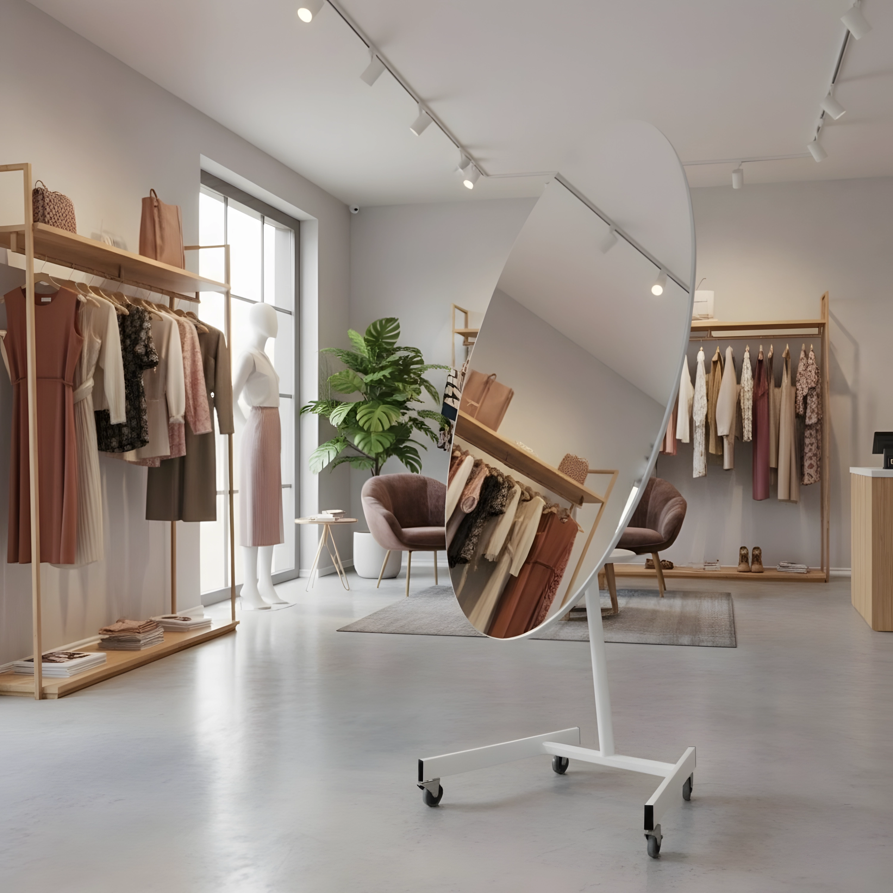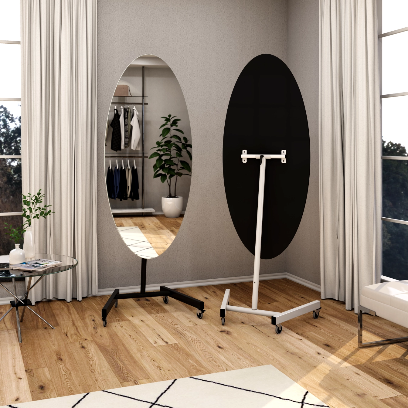 Praktisch, mobil und vielseitig – unser rollbarer Kippspiegel ist die ideale Lösung für Verkaufsräume, Studios, Umkleiden oder Therapieräume. Dank stabiler Konstruktion und leichtgängigen Rollen lässt er sich flexibel bewegen und sicher positionieren. Der Spiegel ist in rechteckiger oder ovaler Form erhältlich und überzeugt durch eine großzügige Spiegelfläche (140 cm Höhe) für eine optimale Ganzkörperansicht. Perfekt für professionelle Einsätze, langlebig und sofort einsatzbereit.