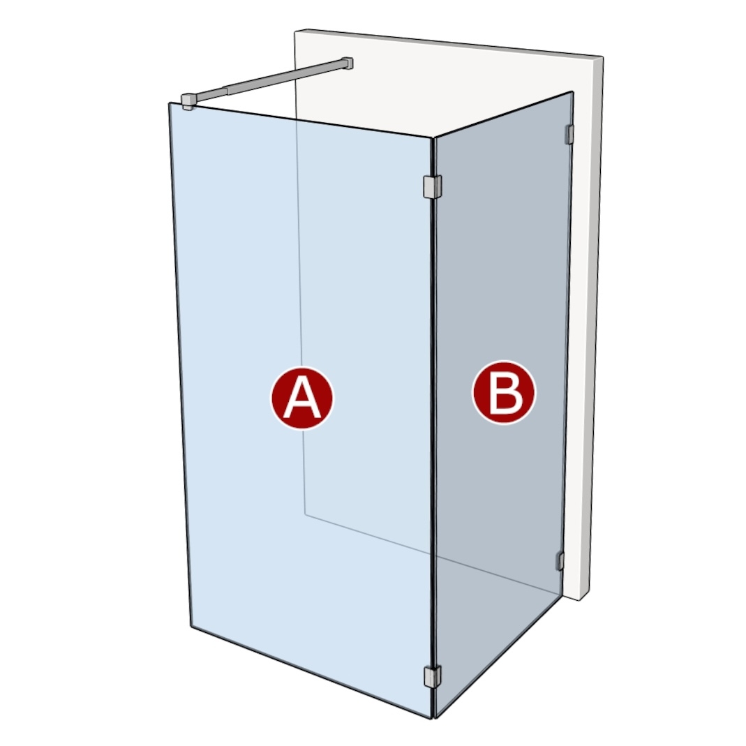 Messen Sie einfach Ihre Fläche für die Abtrennung oder Tür und geben Sie Ihre Maße in die mit Buchstaben gekennzeichneten Felder ein, wir werden dann die erforderlichen Abzüge für Scharniere und Wandhalterungen oder Dichtungen für Sie mit einrechnen.